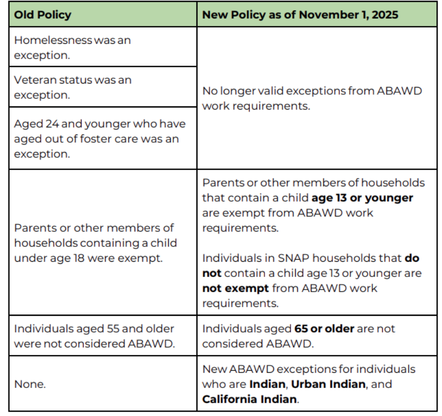 SNAP Time Limits for Able-Bodied Adults Without Dependents (ABAWDs) Effective November 1, 2025.